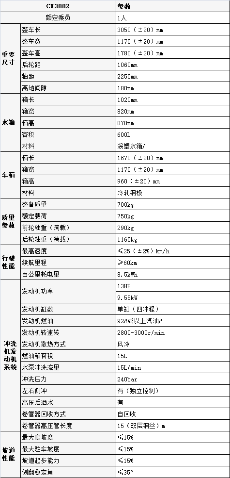 7、本車沖洗機為汽油動機泵組,單缸四沖程汽油機,強勁有力最大沖洗壓力240kg;