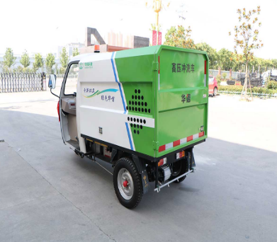 2、大容量沖洗水箱箱,前輪后方設(shè)計兩個可沖地面的高壓噴頭,車輛尾部有一組可調(diào)的高壓灑水噴頭,能夠有效提高作業(yè)時間;