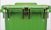 網狀加強筋設計,桶沿雙層加筋使垃圾桶輕松掛車,不變形,抗沖擊