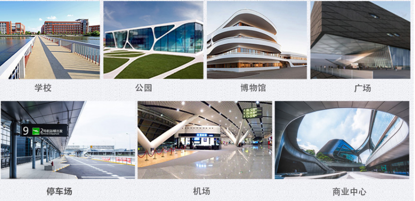 學(xué)校、公園、博物館、廣場(chǎng)、停車場(chǎng)、機(jī)場(chǎng)、商業(yè)中心