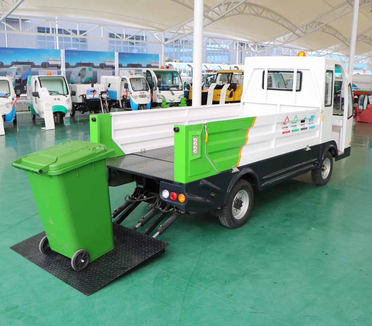 2、車輛尾部采用液壓升降尾板裝置,只要一人操作即可完成垃圾桶或其他干式貨物的裝卸