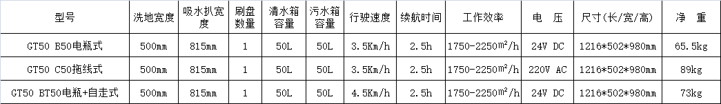 ●電瓶及交流電兩種型號可供選擇(GT50 B50/C50/BT50)